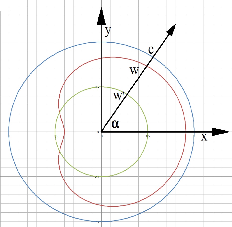 Im folgenden Artikel wird der Frage nachgegangen, wie sich diese Betrachtung darstellen würde, wenn man davon ausginge, dass sich die Geschwindigkeiten immer auch als Verhältnisse zur Lichtgeschwindigkeit darstellen ließen. Das Ergebnis dieser Überlegung hat erstaunliche Ähnlichkeit mit dem Ergebnis der einsteinschen Geschwindigkeitstransformation. Dass es aber bei der gefundenen Formel über den Bereich von – c bis +c nicht zu einer stetigen Funktion kommt, lässt an der Richtigkeit zweifeln. Dennoch ist der Ansatz der Überlegung nicht von der Hand zu weisen und sollte diskutiert werden.