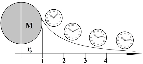 Alsdann steht die Frage, welchen Einfluss das Potential auf die Zeitdilatation ausübt. Die Lösung dieser Frage führt dann dazu, sich Gedanken zu machen, wie die Zeitdilatation ausfallen wird, wenn sich die Gravitationsfelder unterschiedlicher Massen überlagern.
