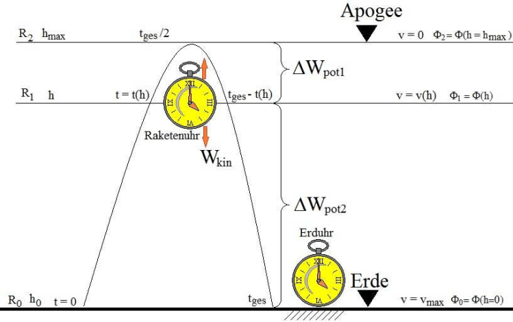 Einerseits hätte schon immer die Frage interessieren sollen, welchen Zusammenhang es zwischen der Zeitdilatation, die aus der Geschwindigkeit resultiert und der, die aus dem Gravitationsgefälle abzuleiten ist, gibt. Und andererseits ist die Frage nach einer exakten