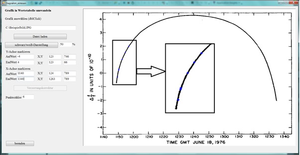 In den beiden folgenden Beschreibungen ist erklärt, wie man mittels kleiner Programme aus den Diagrammen die Daten ermitteln kann. Da würde dann etwas komfortabel gehen und mit besserer Genauigkeit erfolgen, als wenn man Lineal und Bleistift verwenden würde.